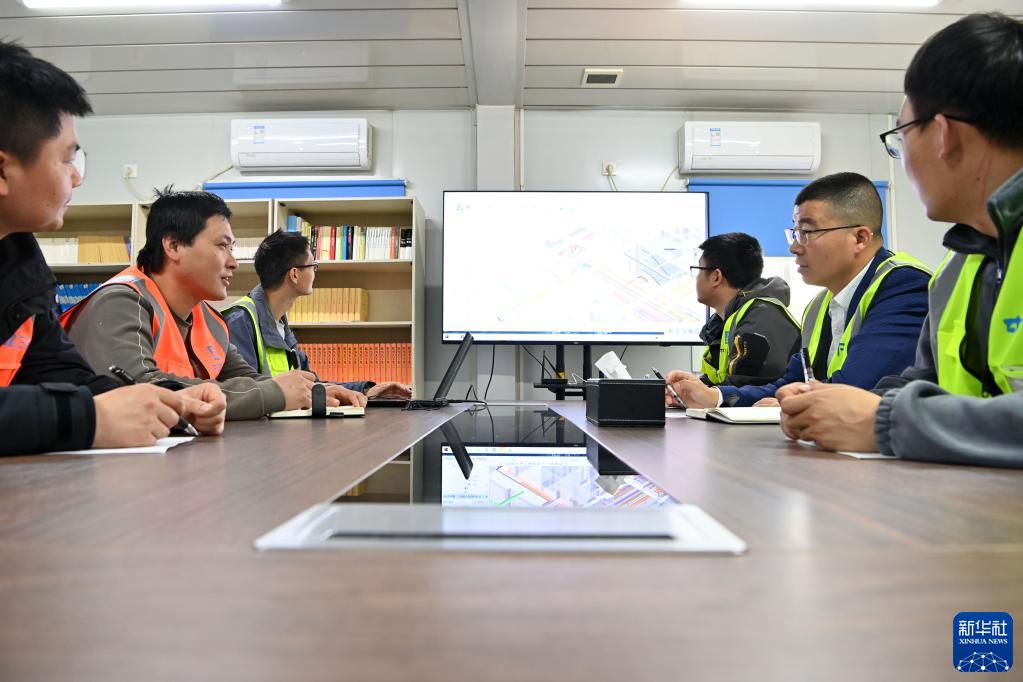 齊國超(左二)在項目部參會討論下一階段施工任務(4月26日攝)。