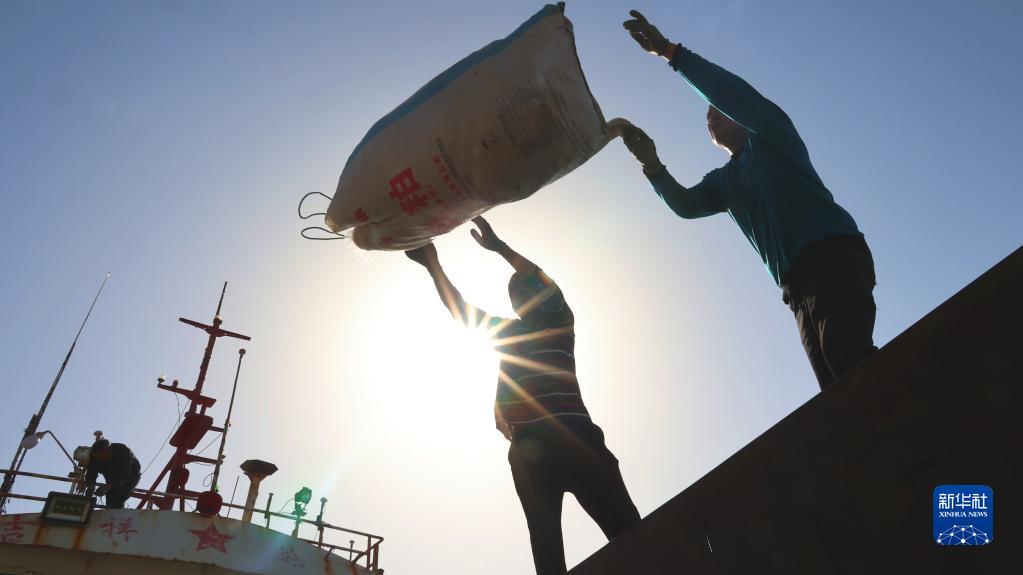 4月30日,在江蘇省連云港市贛榆區青口漁港碼頭,漁民在卸載漁具,為即將到來的伏季休漁做準備。