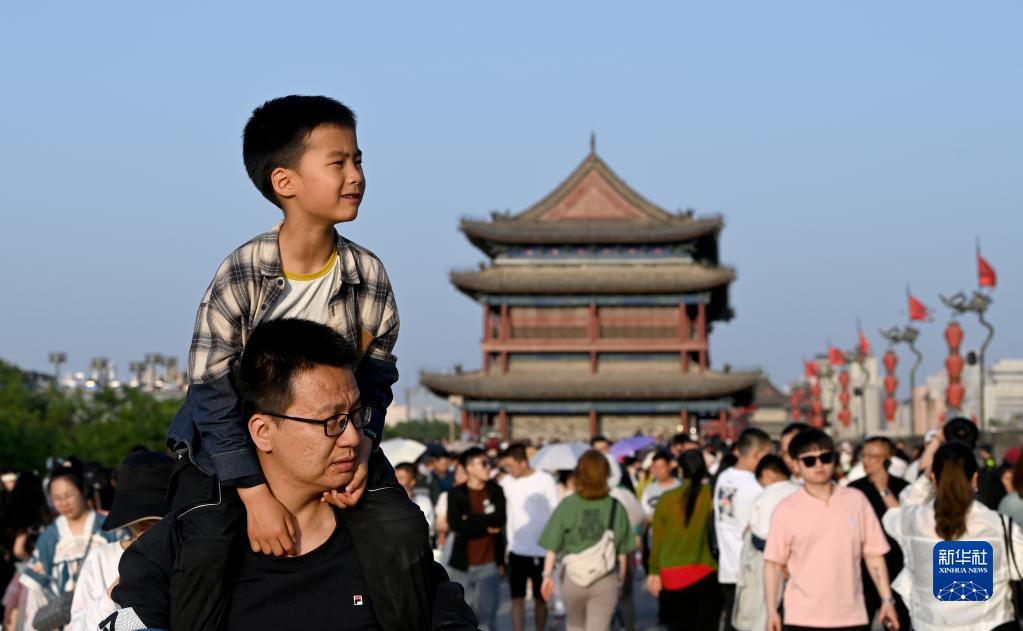 4月30日,游客在西安城墻景區(qū)參觀游覽。