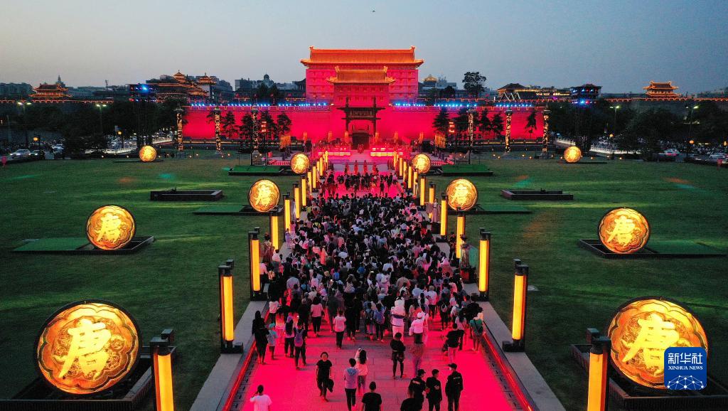 4月30日,游客步入西安城墻景區永寧門(無人機照片)。