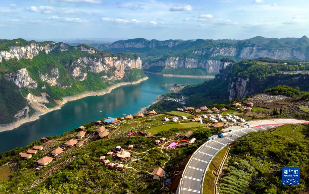 4月29日拍攝的貴州省黔西市化屋露營基地(無人機照片)。