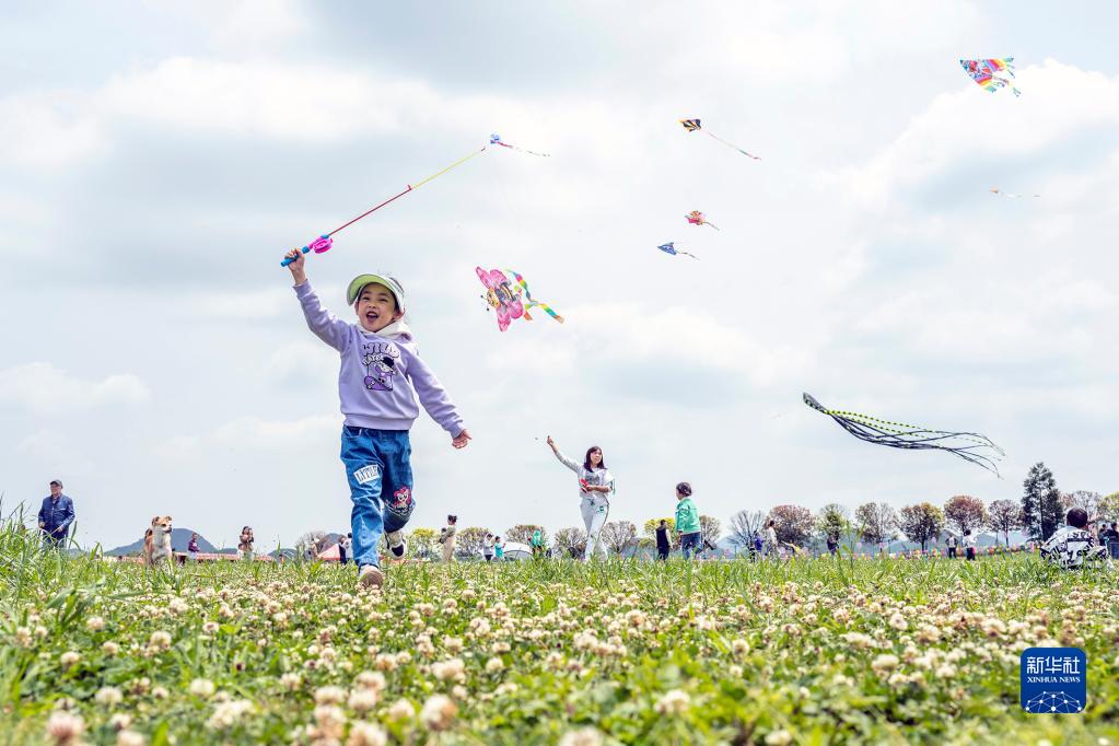 4月30日,小朋友在貴州省畢節(jié)市大方縣一家露營基地放風箏。