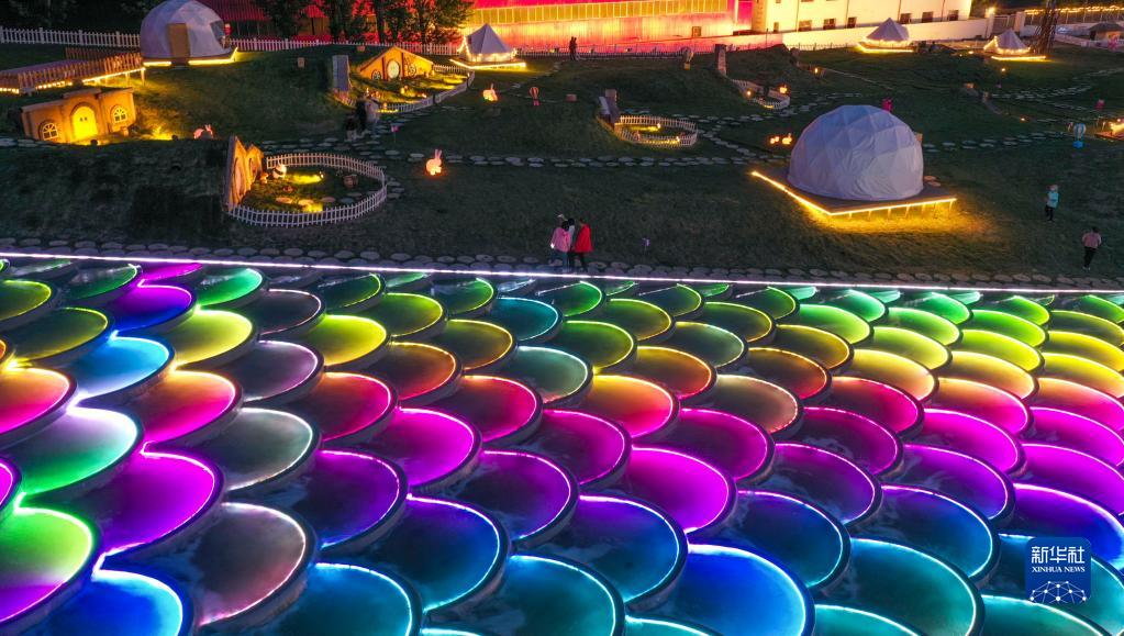 4月30日晚,游客在河北省遵化市一景區賞景游玩(無人機照片)。