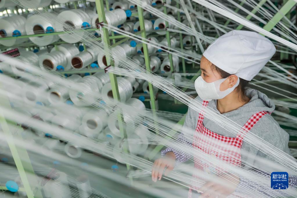 5月1日,河北省遵化市一家化纖紡織企業的工人在車間工作。