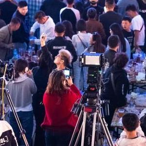 4月29日,在淄博燒烤街,來自全國各地的攝影師在拍攝燒烤節(jié)。
