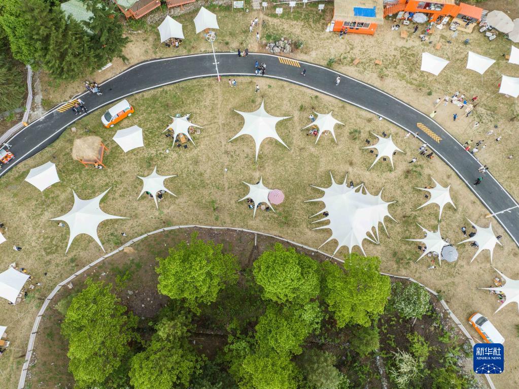 5月1日,游客在貴州省畢節市赫章縣硐上村游玩(無人機照片)。