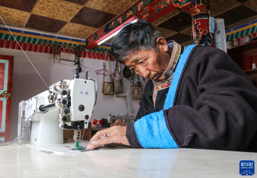 61歲的索朗群培回憶,他小時候見到村里的大人騎在有馬包的馬上,特別威風,讓他對制作馬包產生了濃厚興趣。21歲時,他師從當地老藝人多布杰學習馬包制作技藝。如今,他已是林芝市第一批市級非物質文化遺產項目中馬包手工制作技藝的傳承人。