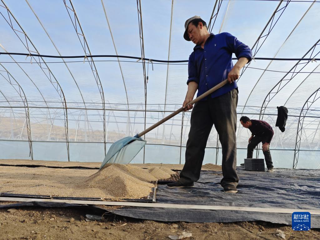 5月1日,河北省承德市豐寧滿族自治縣大灘鎮扎拉營村的農民在進行白菜育苗。