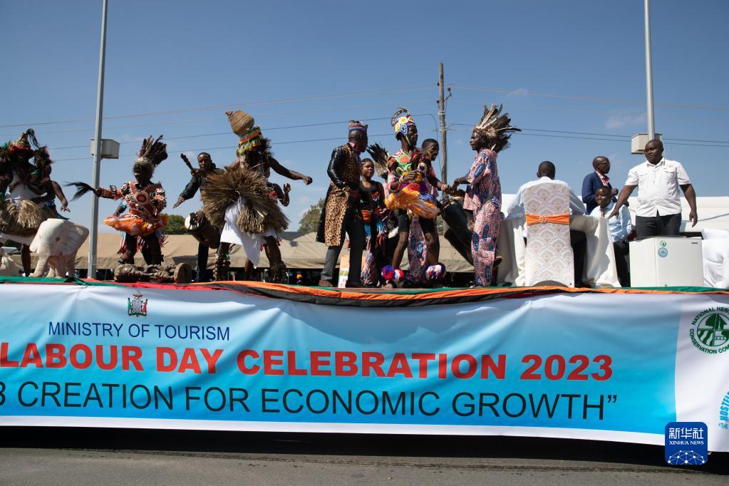 當天上午,贊比亞首都盧薩卡舉行游行活動, 慶?!拔逡弧眹H勞動節。