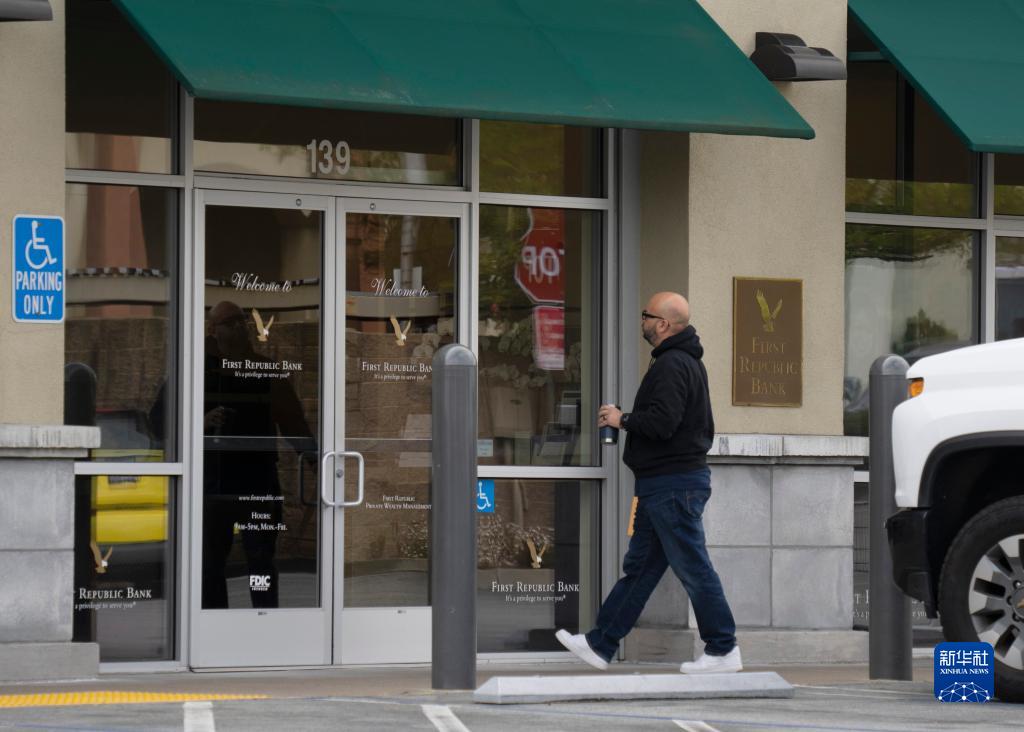 5月1日,在美國加利福尼亞州米爾布雷市,一名男子從一家第一共和銀行前走過。