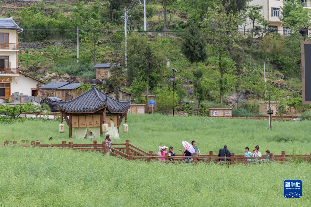 5月2日,游客在重慶市巫溪縣通城鎮(zhèn)龍池村內(nèi)游玩。
