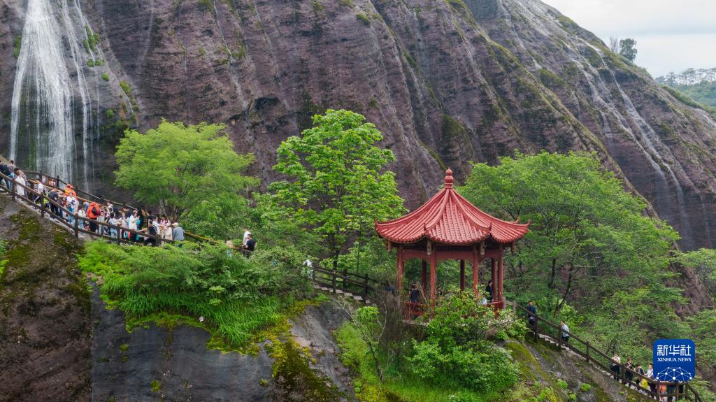 4月29日,游客在福建武夷山天游景區游覽(無人機照片)。