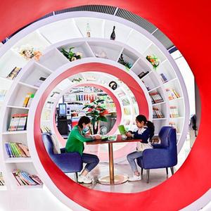 5月2日,人們?cè)谏綎|省青州市一處城市書房閱讀書籍。