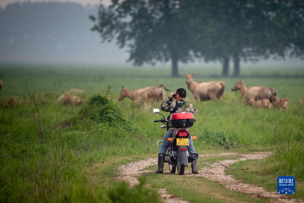 巡護隊伍通過望遠鏡、長焦相機、無人機、視頻監測塔、紅外相機等工具,對1500余頭麋鹿進行日常監測、年節律周期監測、種群動態監測,并對保護區內的氣象數據、水文數據、地表水質數據、植被類型以及其他野生動物情況進行監測記錄。他們還需要承擔卡口值守、應急管理等工作。在他們的悉心照料下,這里成為適宜麋鹿種群棲息的家園。