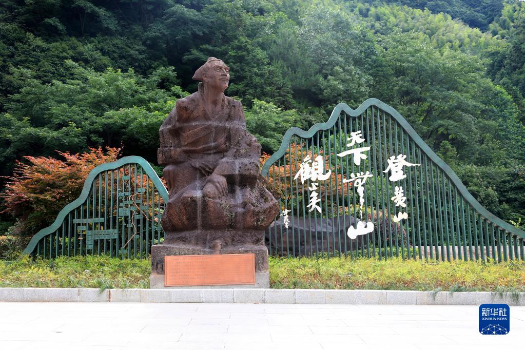 2022年7月8日拍攝的黃山風景區大門處的徐霞客雕像。
