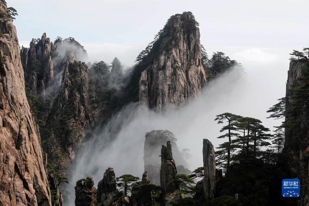 2021年3月10日,黃山臥云峰出現瀑布流云景象。