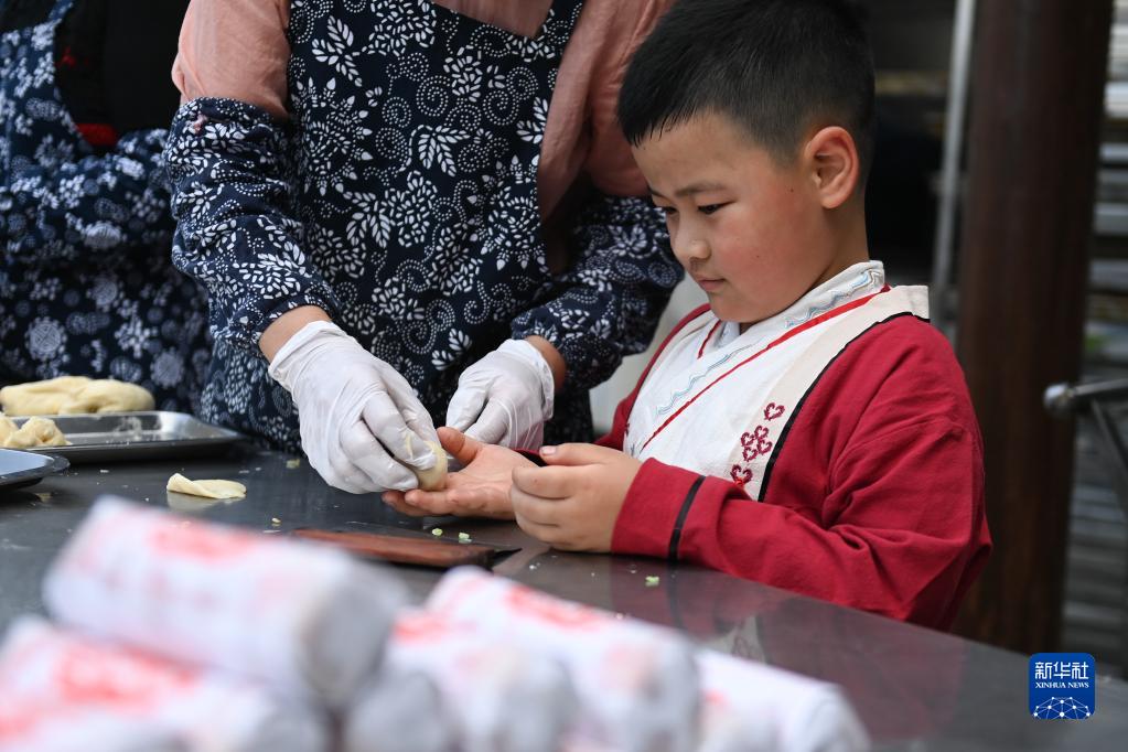 5月4日,小朋友學習制作“立夏餅”。