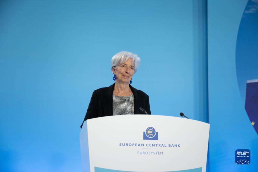 5月4日,歐洲中央銀行行長拉加德在德國法蘭克福歐洲央行總部舉行的新聞發布會上講話。新華社發(歐洲央行供圖)