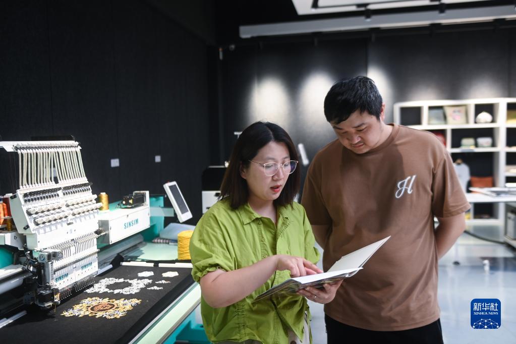 5月4日,諸暨市財(cái)政部門工作人員(左)上門服務(wù),給外貿(mào)企業(yè)講解開拓國際市場方面的財(cái)政政策。
