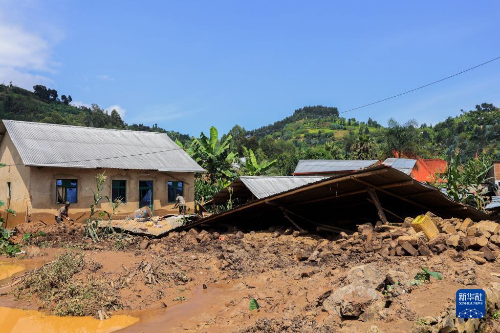 5月4日,人們在盧旺達西方省清理在強降雨和洪水中受損的房屋。