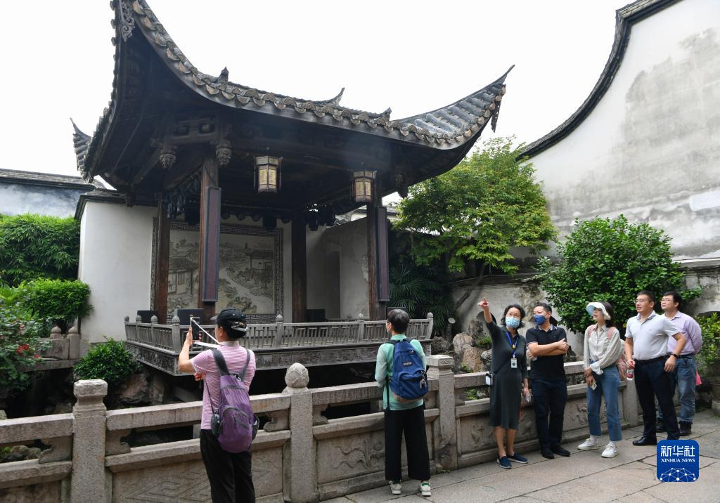 游客在位于福州三坊七巷歷史文化街區(qū)的全國重點文物保護單位水榭戲臺參觀(5月16日攝)。