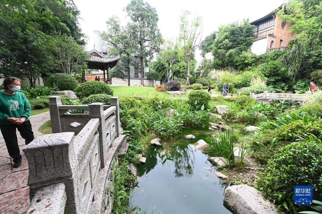 游客在福州冶山春秋園觀賞山水景觀(5月16日攝)。