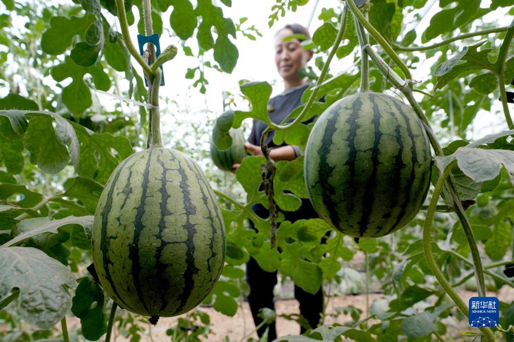 5月17日,河北省柏鄉縣春禾家庭農場工作人員采收吊秧西瓜。