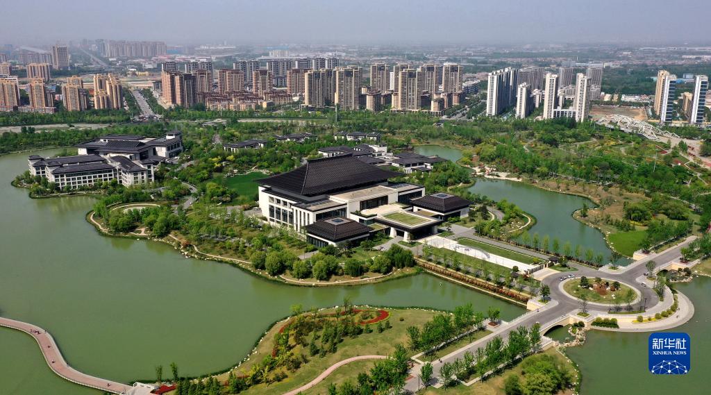 位于西安浐灞生態區的西安國際會議中心(4月16日攝,無人機照片)。