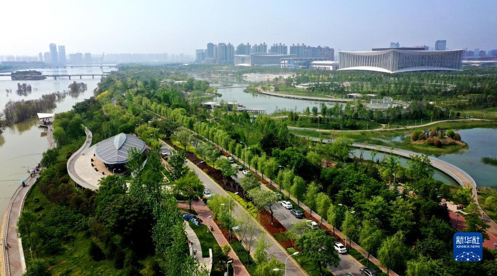 位于西安浐灞生態區的西安國際會展中心(4月26日攝,無人機照片)。