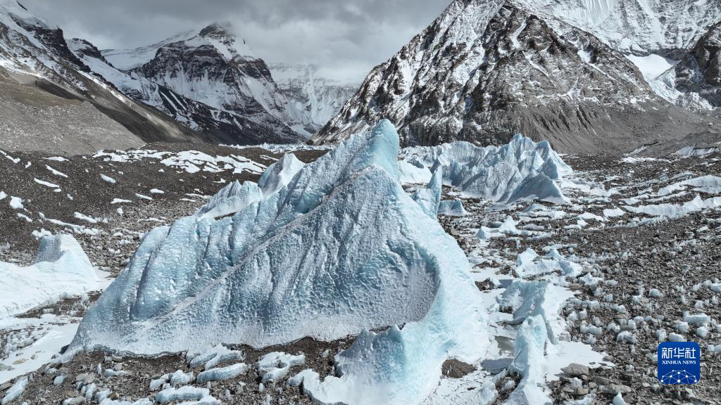 這是中絨布冰川的冰塔林(5月15日攝,無人機照片)。