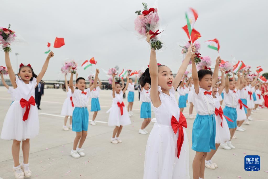 5月17日下午,出席中國-中亞峰會的塔吉克斯坦總統拉赫蒙抵達陜西省西安市。這是歡迎儀式現場。