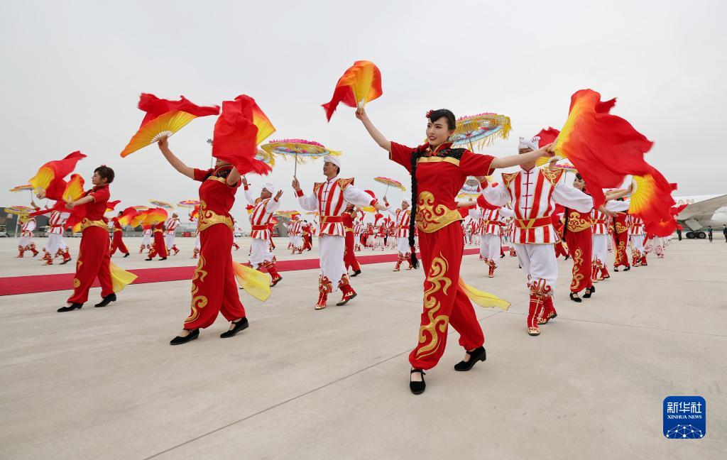 5月17日下午,出席中國-中亞峰會的塔吉克斯坦總統拉赫蒙抵達陜西省西安市。這是歡迎儀式現場。
