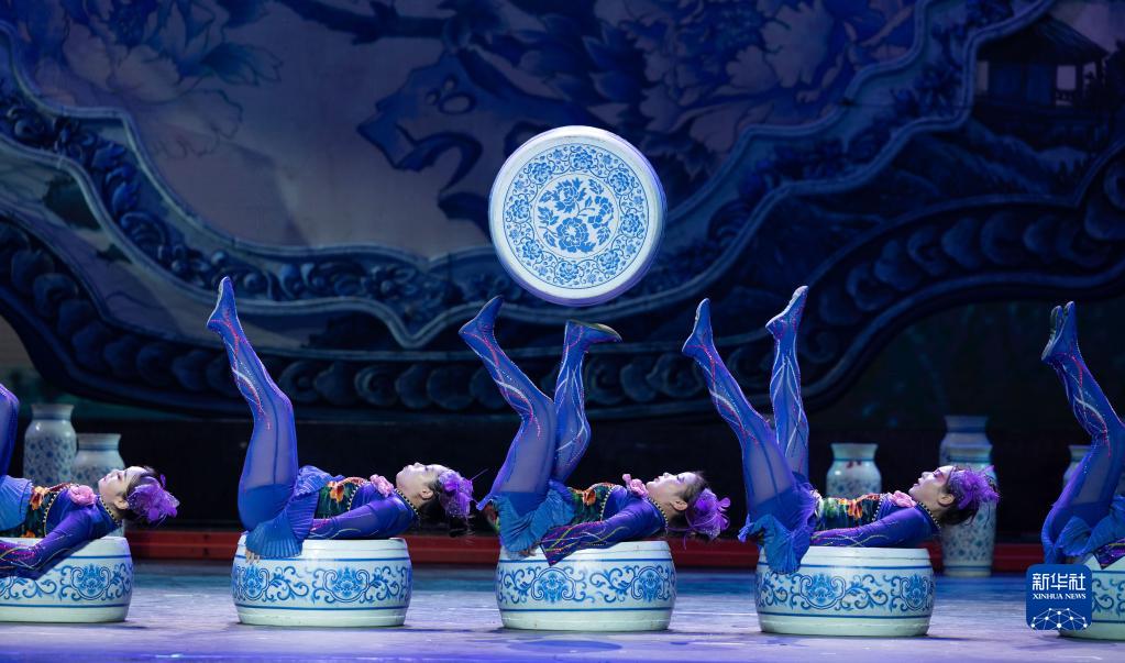 近日,“新時代、新征程——全國優秀雜技劇目晉京展演”在北京開演。系列展演之一的雜技劇《山水國潮》5月18日在北京保利劇院上演。新華社記者 才揚 攝