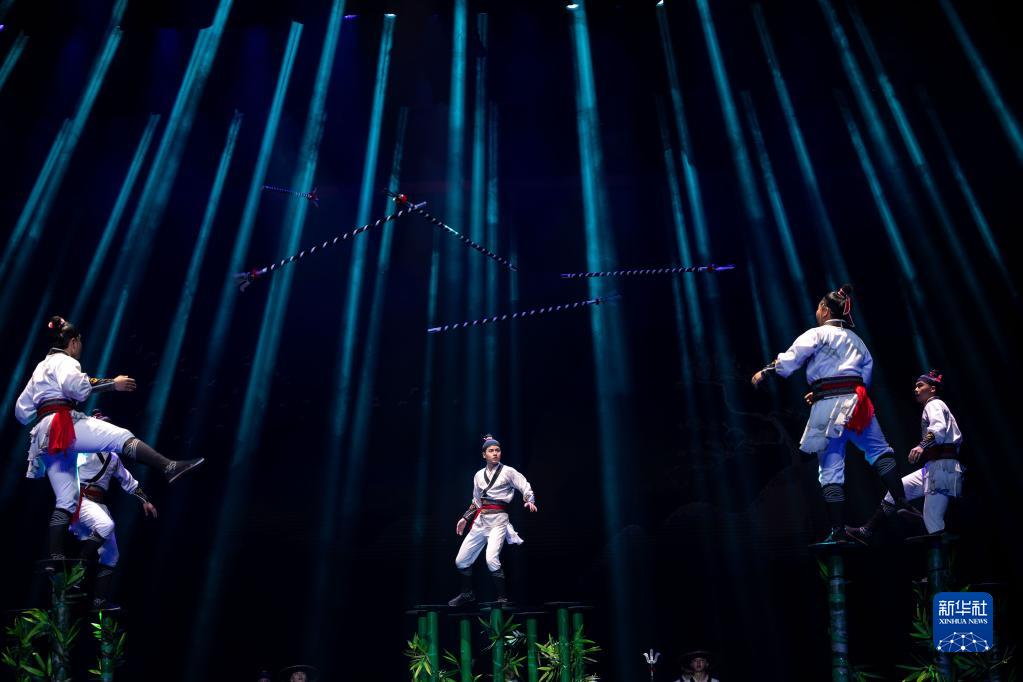 近日,“新時代、新征程——全國優秀雜技劇目晉京展演”在北京開演。系列展演之一的雜技劇《山水國潮》5月18日在北京保利劇院上演。新華社記者 才揚 攝