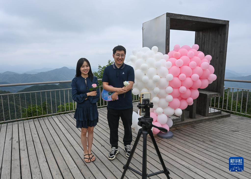 5月19日,由富陽當地青年人才擔當的文旅推薦官正在用直播的方式推薦里山鎮安頂山的特色文旅線路。