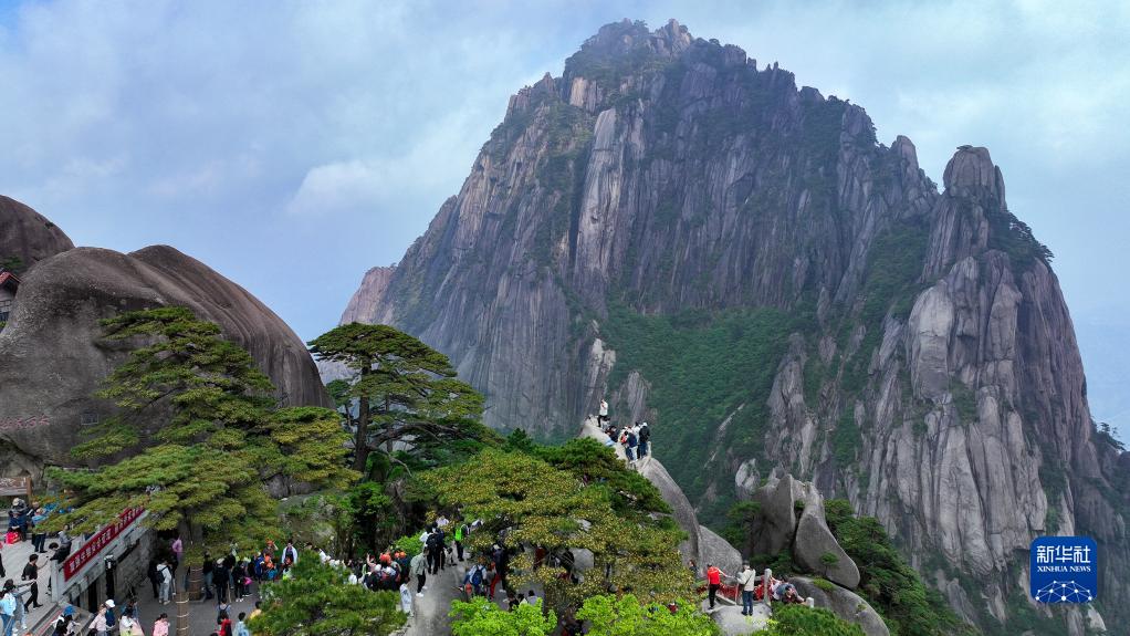 5月18日,游客在安徽黃山風景區(qū)玉屏景區(qū)游覽(無人機照片)。
