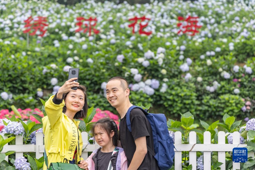 近日,重慶市巴南區石龍鎮柏樹村繡球花基地的400畝繡球花競相綻放,美不勝收,吸引不少游客前來賞花游玩。