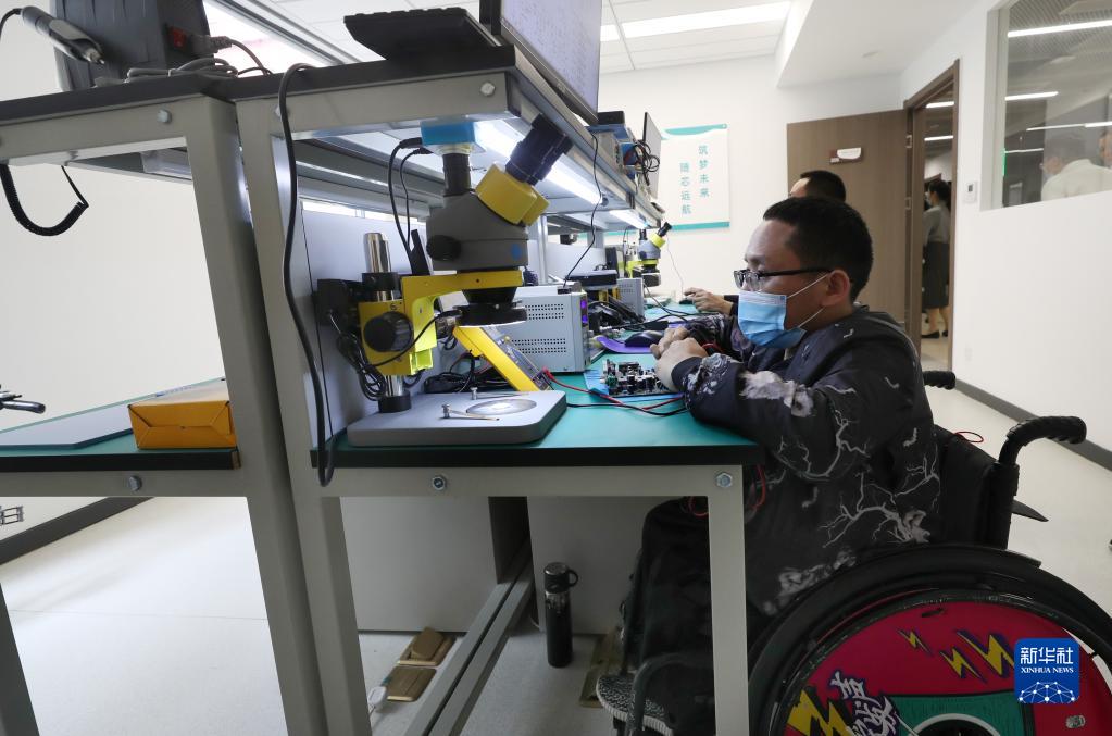 5月20日,在“陽(yáng)光201”平臺(tái)電子科創(chuàng)工作室內(nèi),一位工作人員在進(jìn)行電子元件修理的展示。
