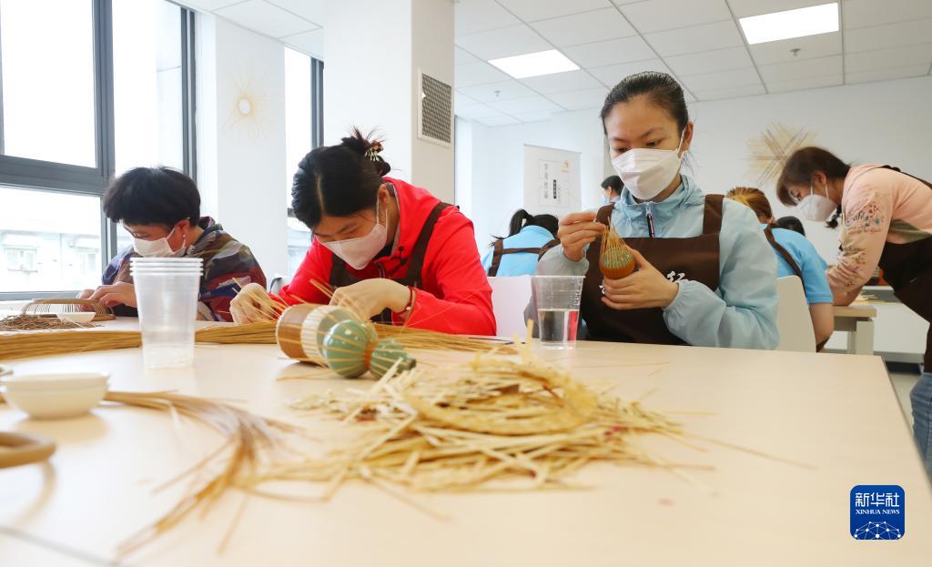 5月20日,上海藝助行公益促進中心的學員在“陽光201”平臺進行竹編工藝品制作展示。