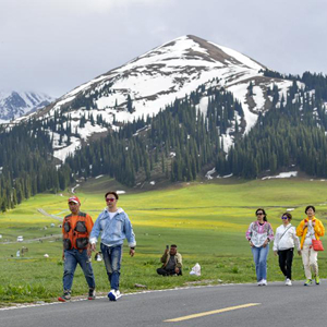 5月19日,游客在位于新疆新源縣的那拉提旅游風(fēng)景區(qū)觀光。