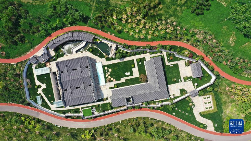 滄州市京杭大運河畔的滄曲書舍(5月16日攝,無人機照片)。
