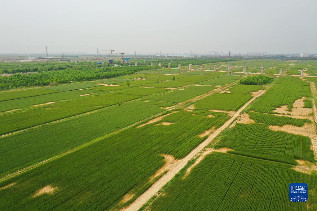 滄州渤海新區黃驊市舊城鎮仙莊片區旱堿地麥田(5月11日攝,無人機照片)。