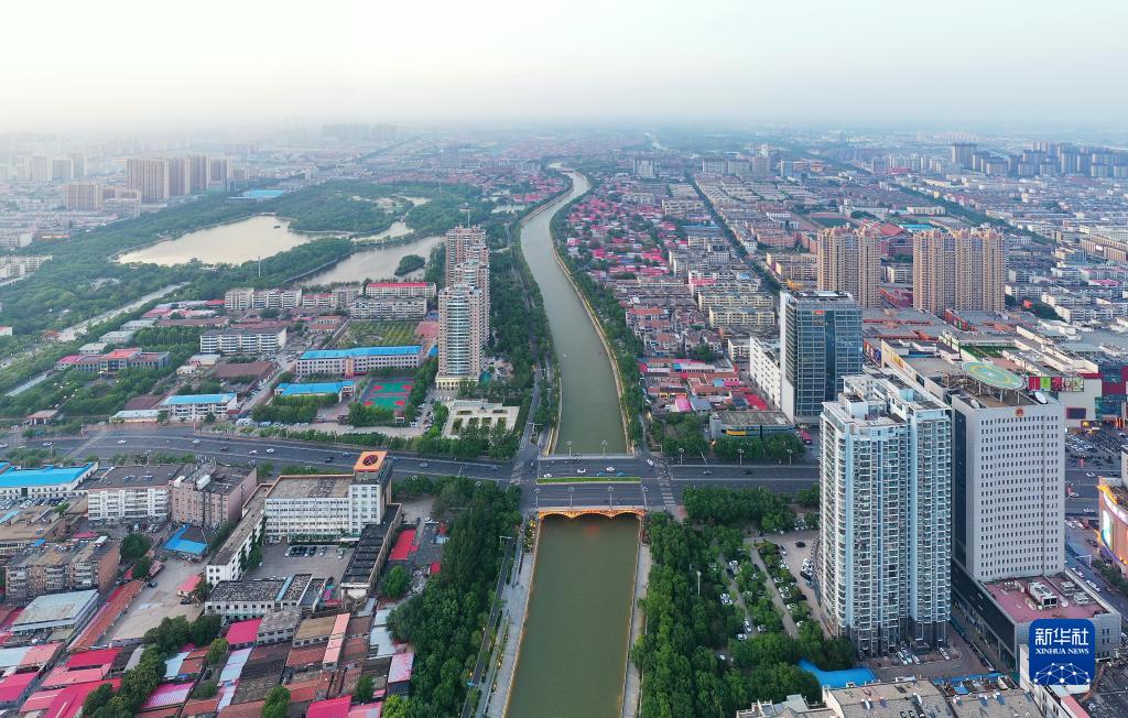 滄州市區境內的京杭大運河河道(5月15日攝,無人機照片)。