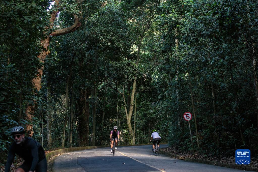 5月20日,運動愛好者在巴西里約熱內盧蒂茹卡國家公園騎行。
