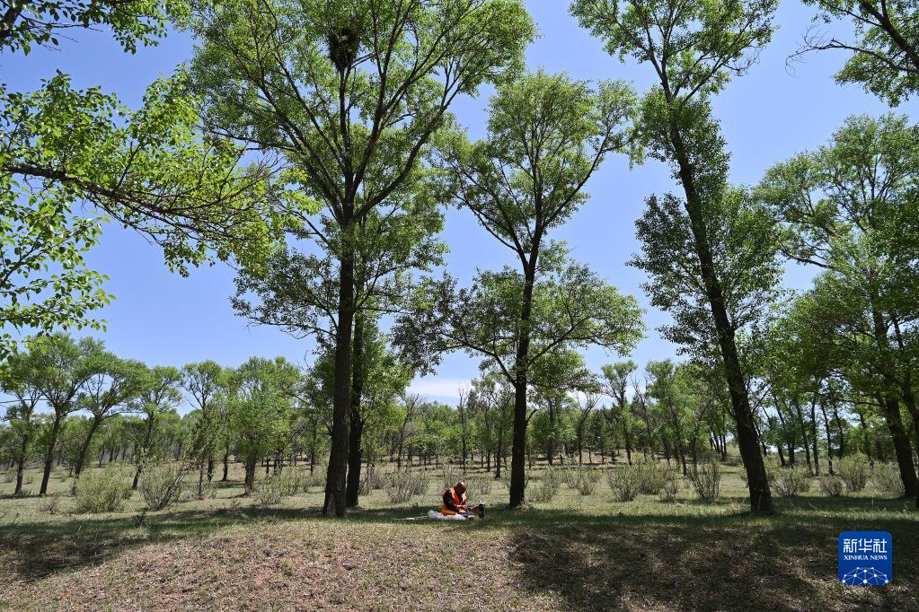 護林員馬裕在巡查途中休息(5月18日攝)。