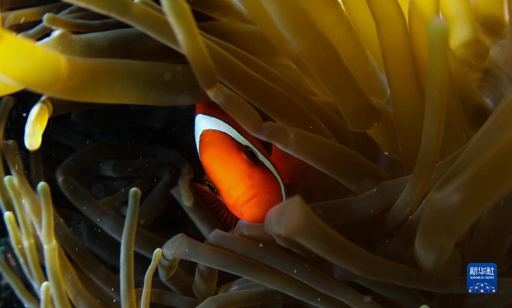 這是在蜈支洲島海域海洋牧場拍攝的小丑魚(5月17日攝)。