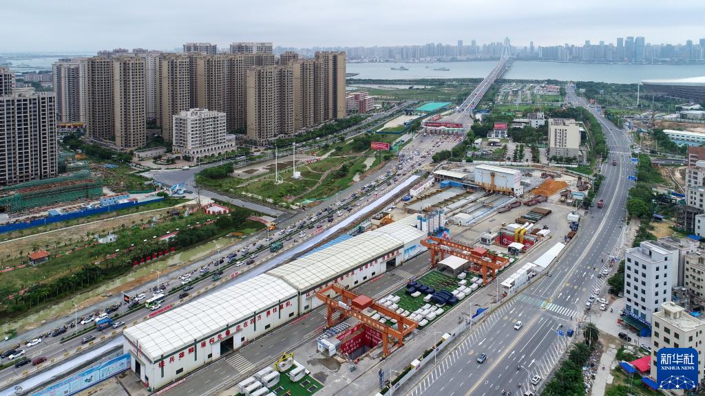 中鐵十四局承建的廣湛鐵路湛江灣海底隧道盾構區間“過海穿城”(5月24日攝,無人機照片)。