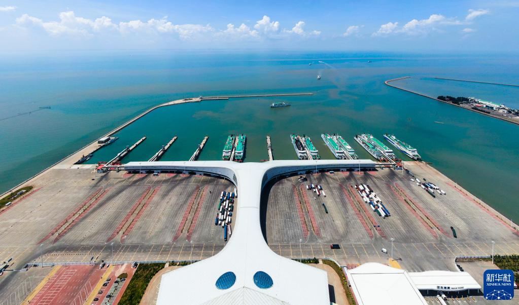 廣東省湛江市徐聞港風光(5月26日攝,無人機照片)。徐聞港是瓊州海峽北岸最主要的客貨運輸港口,是連接粵港澳大灣區與海南自由貿易港的重要港口。