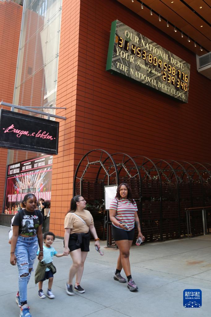 5月29日,人們經(jīng)過(guò)美國(guó)紐約曼哈頓的“國(guó)債鐘”。“國(guó)債鐘”是一個(gè)大型計(jì)數(shù)器,它實(shí)時(shí)更新美國(guó)的公共債務(wù)總額,并顯示出每個(gè)美國(guó)家庭所要負(fù)擔(dān)的數(shù)額。