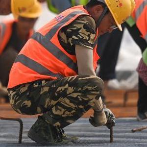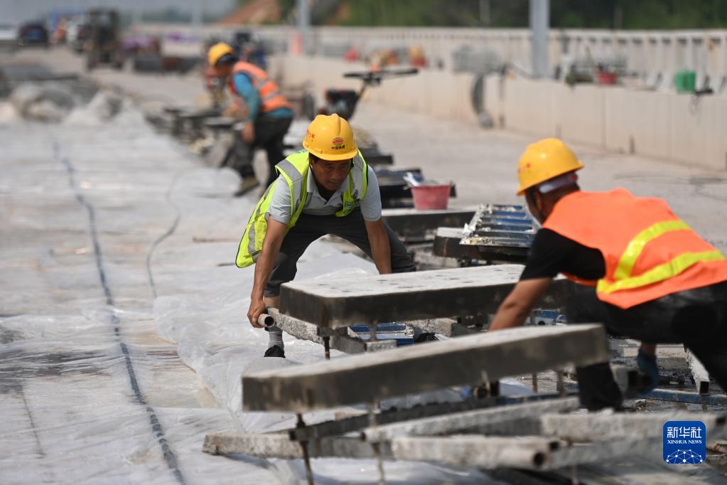 5月30日,中鐵十一局的建設者在杭衢鐵路無砟軌道施工現場作業。